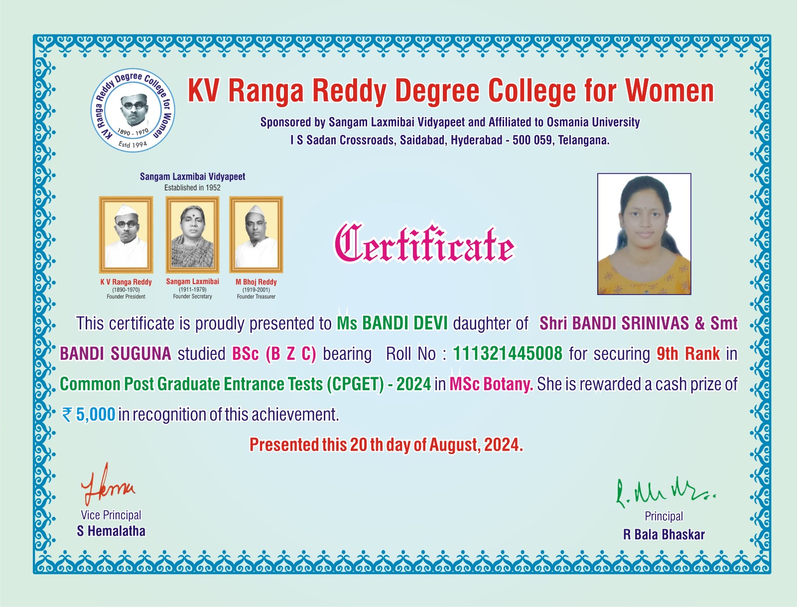 | 4. | 111321445008BSc (B Z C) | BANDI DEVI | MSc BotanyH.T No: 61087530034 | 9th |