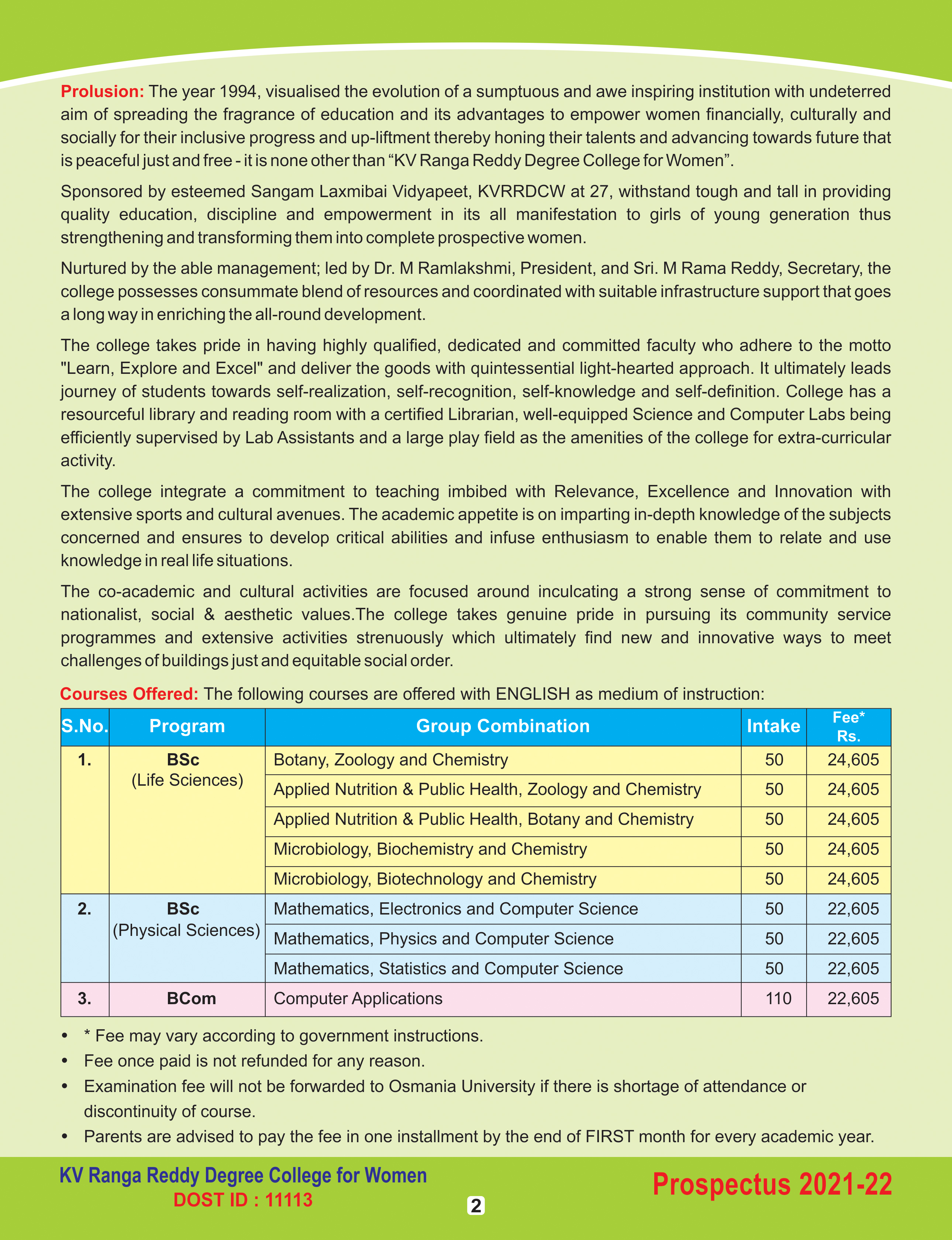 Developed & Maintained by KV Ranga Reddy Degree College for Women